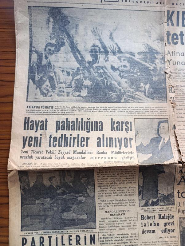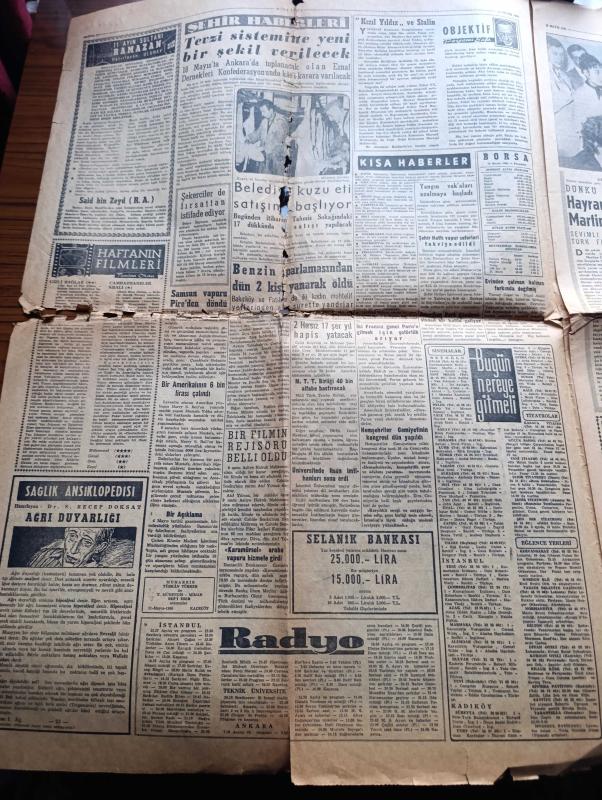Milliyet Gazetesi - Turkish Newspaper - 11 Mayıs 1956 - Atina'da nümayiş fotoğraf - Kıbrıslı 2 rum tethişçi idam edildi - Atina'daki elçilikler muhafaza altında - Yeni Ticaret vekili Zeyyat Mandalinci konuşuyor fotoğraf - hayat pahalılığına karşı yeni tedbirler alınıyor - Ankara barosunun toplantısı men edildi - Robert koleji'nde talebe grevi devam ediyor - İstanbul Ankara Radyosu Programı - Kızılyıldız ve Stalin yazan Peyami Safa - İstanbul'da basın toplantısı yapan Martine Carol hayranlarının hücumundan konuşamadı Fotoğrafı - sanatkarlar bir tiyatro kanunu hazırlanmasını istiyor - İsmail Dümbüllü kongrede Fotoğrafı - ölüm perdesi yazan Ümit Deniz yazı dizisi - Boncuk Walt Disney - hep yarın yazan Cahit Uçuk Yazı Dizisi - Zeki Müren bebek gazinosunda - Ali Muhiddin Hacı Bekir - Macaristan Demir perdeyi kaldırıyor - Galatasaray İsrail'e gidemiyor - İstanbulspor 4 Kasımpaşa 4 Fotoğrafı - basketbolda Modasporlular şampiyonadan çekildiler - Fenerbahçe haftayı boş geçirecek - Beşiktaş kamp adlı eser, Kitap > Süreli Yayınlar > Gazeteler > Türkiye > Genel > Günlük kategorisinde İkinci El olarak satıştadır.