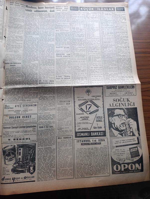Milliyet Gazetesi - Turkish Newspaper - 16 Mart 1961 - hüküm milli birlik komitesi ile hükümeti düşürmeye teşebbüsten sanık 27 kişi Dün mahkum oldu fotoğraf - Sanıklara 6 ayla 4 yıl arasında hapis cezası verildi - Adnan Menderes'in avukatı Burhan Apaydın ve gazeteci Zihni Kanmaz tahliye edildi - Başbakan yardımcısı Fahri Özdilek Rektör Sıddık Sami Onarla konuşurken fotoğraf - Adalet Partisi başkan vekili Mehmet Yorgancıoğlu nezarate alındı - kerkük'te 4 Türk'ün öldürülmüş olduğu açıklandı - 5 gazeteci işleri bakanı Nasır Zeytinoğlu'nu basın Şeref divanına verecek - Adnan Menderes basın hürriyeti tahdit edilmemişti dedi - İstanbul Ankara Teknik Üniversite radyo programı - kardeş kardeş geçinelim yazan Çetin Altan - siyaset dünyasında yazan Sami Kohen - Suriye'de malı bulunan türkler müşkül durumda - Abdülcanbaz'ın maceraları çizen Turhan Selçuk - Talat Paşa anıldı fotoğraf - DYO - Türkiye basketbol şampiyonasının ilk gününde Galatasaray 50 Fenerbahçe 45 fotoğraflar - binicilik ekibi adlı eser, Kitap > Süreli Yayınlar > Gazeteler > Türkiye > Genel > Günlük kategorisinde İkinci El olarak satıştadır.