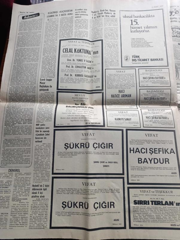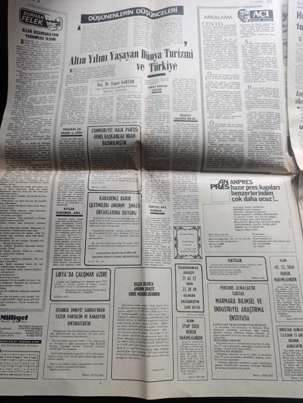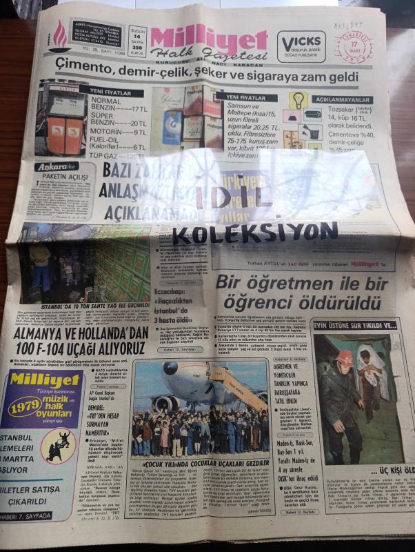Milliyet Gazetesi - Turkish Newspaper - 17 Mart 1979 - çimento Demir Çelik şeker ve sigaraya zam geldi - İstanbul'da 10 ton sahte yağ ele geçirildi Fotoğrafı - Almanya ve Hollanda'dan 100 F 104 uçağı alıyoruz - Süleyman Demirel TRT'den hesap sormayan namerttir dedi - öğretmen ve yöneticiler tanıklık yapınca Darüşşafaka tatil edildi - Allah dışarıdakilerin yardımcısı olsun yazan Burhan Felek - Çin Devlet Başkanı Hua Vietnam'dan tamamen çekildik dedi - İhsan Sabri Çağlayangil bu hükümet İnönü'nün tabiriyle fena gidecektir dedi - ülkücünün taktiği yoktur yazan Örsan Öymen - kültür bakanı Ahmet Taner Kışlalı Maria Rita Epik'le görüştü - 3. Balkan film şenliği 14 21 Nisan'da İstanbul yapılacak - Melike Demirağ Sürü filminde Fotoğrafı - insanları kandıranlar yazan Metin And - haftanın filmi Kanal başrolde Tarık Akan Tuncel Kurtiz Meral Orhonsay Bulvar Taksim Venüs sinemasında - Galatasaray ve Fenerbahçe yıllarca Türk basketbolunda önderlik yaptılar - milli takımımızın Malta maçı kadrosu adlı eser, Kitap > Süreli Yayınlar > Gazeteler > Türkiye > Genel > Günlük kategorisinde İkinci El olarak satıştadır.