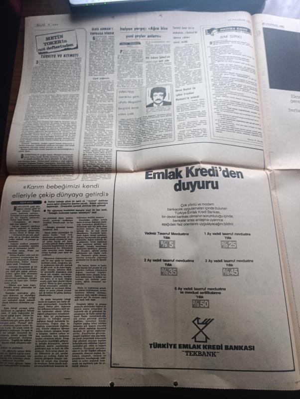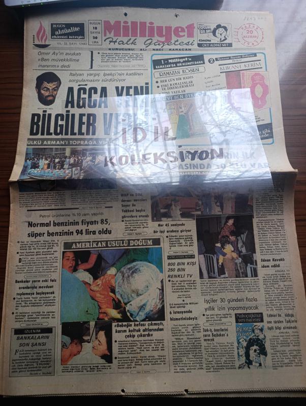 Milliyet Gazetesi - Turkish Newspaper - 20 Haziran 1982 - Mehmet Ali Ağca yeni bilgiler verdi - İtalyan yargıç Abdi İpekçi'nin katilinin sorgulamasını sürdürüyor - genel haberler müdürümüz Ülkü Arman'ı toprağa verdik - MHP ve DİSK davası savcısı Nurettin Soyer başka göreve atandı - gurbetçilerin ilk kazasında 10 ölü var - işçiler 30 günden fazla yıllık izin yapamayacaklar - Erhan Kavaklı idam edildi - Lübnan'da öldüğü öne sürülen Türklerle ilgili bilgi alınamadı - Abdülcanbaz çizen Turhan Selçuk - Galatasaray ve Fransızca yazan Haldun Taner - pazar şakası yazan Burhan Felek - şeytanın gör dediği yazan Çetin Altan - Derya Baykal ile spiker Orhan Ertanhan Marmaris'te evlendi - satranç köşesi hazırlayan Kahraman Olgaç - Fred Astaire Savaş yıldızına konuk olacak Fotoğrafı - alkışlar Maradona için Fotoğrafı - brezilyalı Falcao Fotoğrafı - Jupp Derwall ile Alman futbol federasyonu Başkanı Neuberger kavga etti - Altan Erbulak çiziyor - Ziya Şengül - İngiltere Çekoslovakya maçı, Ali Naci Karacan tarafından kaleme alınmıştır. Milliyet Gazetesi - Turkish Newspaper - 20 Haziran 1982 - Mehmet Ali Ağca yeni bilgiler verdi - İtalyan yargıç Abdi İpekçi'nin katilinin sorgulamasını sürdürüyor - genel haberler müdürümüz Ülkü Arman'ı toprağa verdik - MHP ve DİSK davası savcısı Nurettin Soyer başka göreve atandı - gurbetçilerin ilk kazasında 10 ölü var - işçiler 30 günden fazla yıllık izin yapamayacaklar - Erhan Kavaklı idam edildi - Lübnan'da öldüğü öne sürülen Türklerle ilgili bilgi alınamadı - Abdülcanbaz çizen Turhan Selçuk - Galatasaray ve Fransızca yazan Haldun Taner - pazar şakası yazan Burhan Felek - şeytanın gör dediği yazan Çetin Altan - Derya Baykal ile spiker Orhan Ertanhan Marmaris'te evlendi - satranç köşesi hazırlayan Kahraman Olgaç - Fred Astaire Savaş yıldızına konuk olacak Fotoğrafı - alkışlar Maradona için Fotoğrafı - brezilyalı Falcao Fotoğrafı - Jupp Derwall ile Alman futbol federasyonu Başkanı Neuberger kavga etti - Altan Erbulak çiziyor - Ziya Şengül - İngiltere Çekoslovakya maçı adlı eser Türkçe dilindedir.