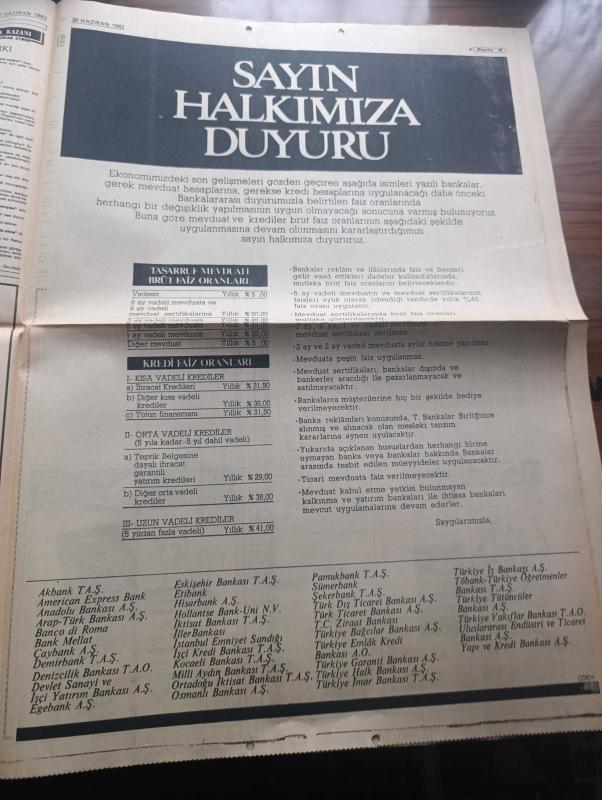 Milliyet Gazetesi - Turkish Newspaper - 20 Haziran 1982 - Mehmet Ali Ağca yeni bilgiler verdi - İtalyan yargıç Abdi İpekçi'nin katilinin sorgulamasını sürdürüyor - genel haberler müdürümüz Ülkü Arman'ı toprağa verdik - MHP ve DİSK davası savcısı Nurettin Soyer başka göreve atandı - gurbetçilerin ilk kazasında 10 ölü var - işçiler 30 günden fazla yıllık izin yapamayacaklar - Erhan Kavaklı idam edildi - Lübnan'da öldüğü öne sürülen Türklerle ilgili bilgi alınamadı - Abdülcanbaz çizen Turhan Selçuk - Galatasaray ve Fransızca yazan Haldun Taner - pazar şakası yazan Burhan Felek - şeytanın gör dediği yazan Çetin Altan - Derya Baykal ile spiker Orhan Ertanhan Marmaris'te evlendi - satranç köşesi hazırlayan Kahraman Olgaç - Fred Astaire Savaş yıldızına konuk olacak Fotoğrafı - alkışlar Maradona için Fotoğrafı - brezilyalı Falcao Fotoğrafı - Jupp Derwall ile Alman futbol federasyonu Başkanı Neuberger kavga etti - Altan Erbulak çiziyor - Ziya Şengül - İngiltere Çekoslovakya maçı adlı eser, Kitap > Süreli Yayınlar > Gazeteler > Türkiye > Genel > Günlük kategorisinde İkinci El olarak satıştadır.