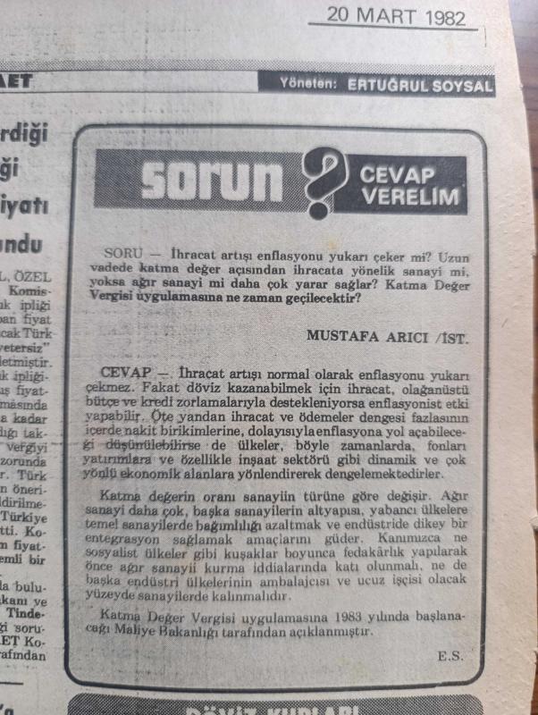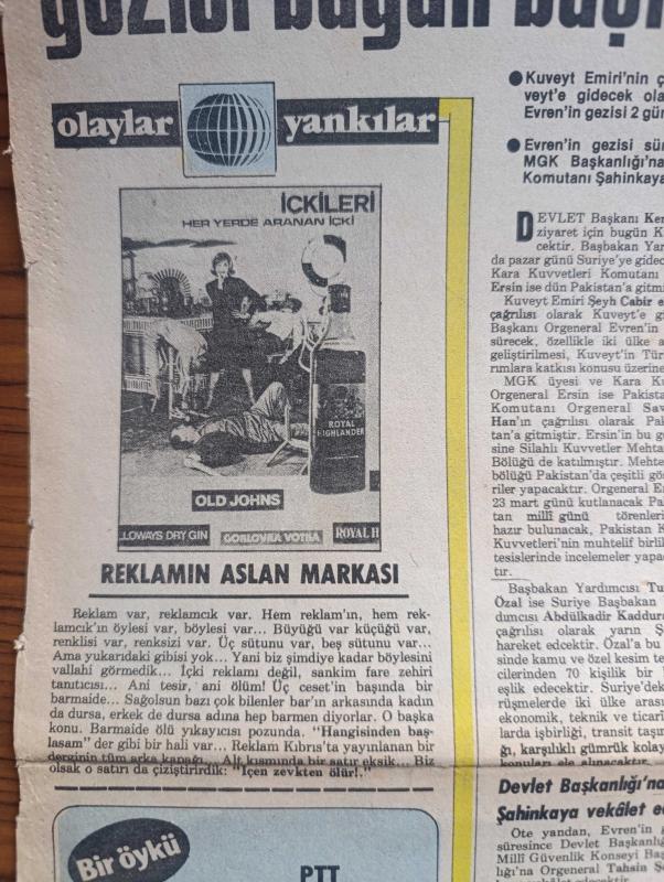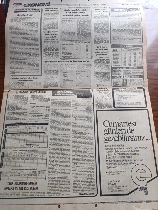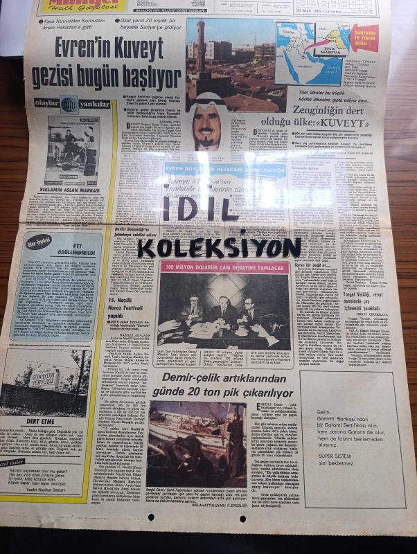 Milliyet Gazetesi - Turkish Newspaper - 20 Mart 1982 - Kenan Evren'in Kuveyt gezisi bugün başlıyor - Kara Kuvvetleri komutanı Nurettin Ersin Pakistan'a gitti - Turgut Özal Yarın 20 kişilik bir heyetle Suriye'ye gidiyor - zenginliğin dert olduğu ülke Kuveyt - 1977 yılından beri Kuveyt devlet başkanlığını Emir Cabir El Ahmet El Sabah üstlendi Fotoğrafı - reklamın Aslan markası - Kuveyt Türkiye'nin yapılabilir önerilerinin tümünü finanse ederiz - devlet başkanlığına Tahsin Şahinkaya vekalet ediyor - 15. Nazilli horoz festivali yapıldı - bir öykü PTT ödüllendirildi - Yozgat valiliği resmi dairelerde çay içilmesini yasakladı - Demir Çelik artıklarından günde 20 ton pik çıkarılıyor - ekonomi ve iş dünyası yazan Ertuğrul Soysal - 1982'in ilk iki ayında besin maddelerindeki fiyat artışı sanayi ürünlerini geride bıraktı - 1982'de Mısıra 200 milyon dolarlık bağlantı ve ihracat gerçekleştirilecek - Ticaret Bankası Ercan holding'in kontrolüne geçiyor - döviz kurları - 1 Amerikan Doları 144.35 TL adlı eser, Kitap > Süreli Yayınlar > Gazeteler > Türkiye > Genel > Günlük kategorisinde İkinci El olarak satıştadır.
