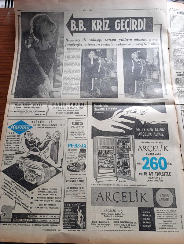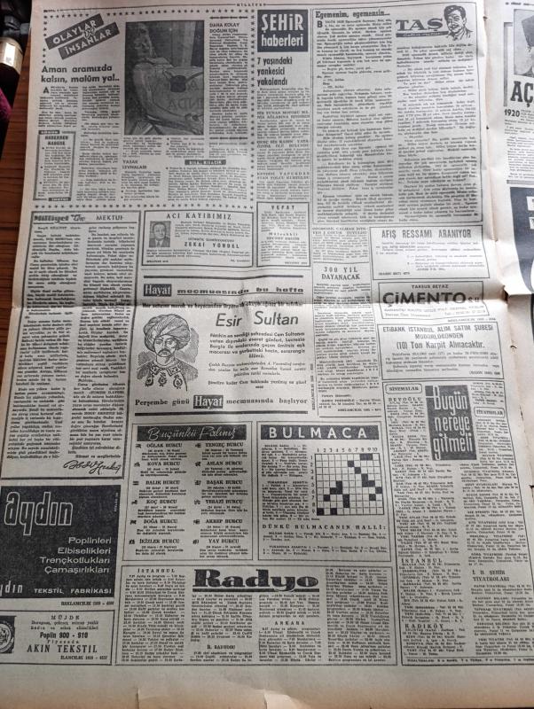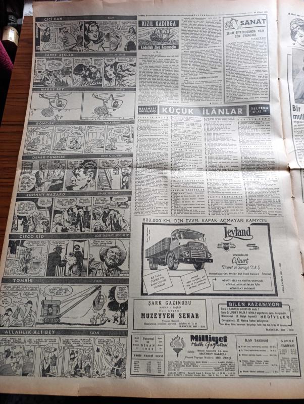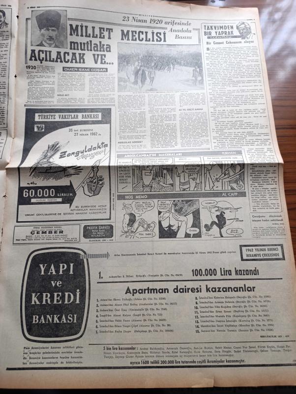 Milliyet Gazetesi - Turkish Newspaper - 23 Nisan 1962 - hasta sakat ve çok yaşlı siyasi mahkumlar hakkında Cumhurbaşkanı Cemal Gürsel siyasi af için yetkisini kullanacak - Ragıp Gümüşpala itham ediyor - Cumhuriyetçi Köylü Millet Partisi kurultayında bir araya oturan ve Osman bölükbaşı'ya karşı Ahmet Tahtakılıçı destekleyen delegeler fotoğraf - Anayasa mahkemesi kuruluyor - egemenlik ve çocuk Bayramı bugün bütün yurtta kutlanıyor - Suni böbrek cihazı bir hayat kurtardı - egemenim egemensin yazan Çetin Altan - İstanbul Ankara Radyosu Programı - 23 Nisan 1920 arifesinde Anadolu basını yazan Ömer Sami Coşar - Abdülcanbaz'ın maceraları çizen Turhan Selçuk - şehir tiyatrosunda yılın son oyunları yazan Altan İlkin - Brigitte Bardot kriz geçirdi fotoğraflar - Arçelik buzdolabı - genç milli takımımız grup birinciliğine yaklaşıyor - Genç milli takımımızın fransa'yı 2-0 yendiği maçtan fotoğraf - Fenerbahçe'nin Karagümrük karşısında galibiyet hakkı değildi fotoğraf - Vefa 1 Feriköy 0 adlı eser, Kitap > Süreli Yayınlar > Gazeteler > Türkiye > Genel > Günlük kategorisinde İkinci El olarak satıştadır.