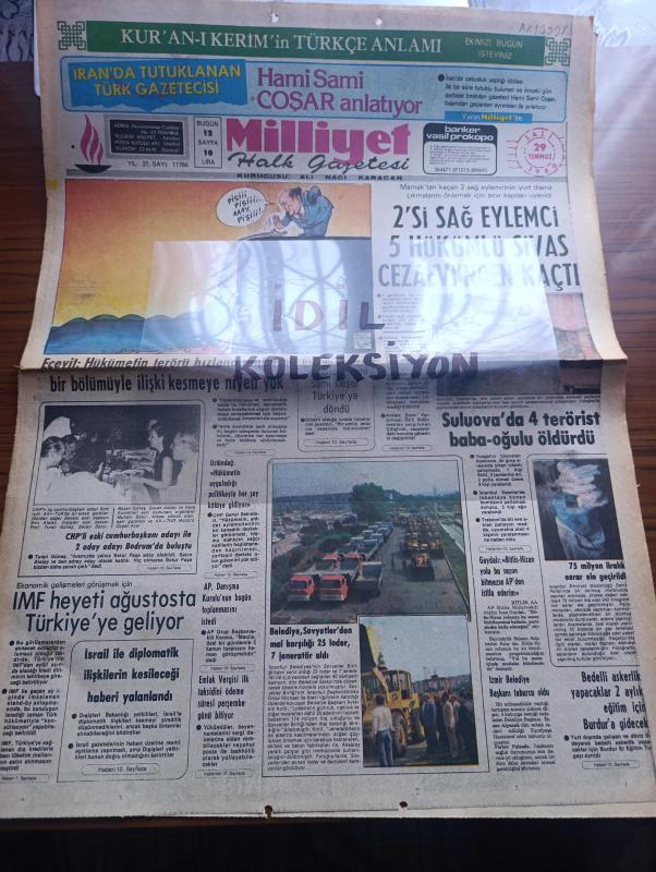 Milliyet Gazetesi - Turkish Newspaper - 29 Temmuz 1980 - Süleyman Demirel karikatürü çizen Bedri Koraman - 2'si sağ eylemci 5 hükümlü Sivas cezaevinden kaçtı - Suluova'da 4 terörist baba oğulu öldürdü - Bülent Ecevit hükümetin terörü hızlandıran bir bölümü ile ilişki kesmeye niyeti yok - Muhsin Batur - Turan Güneş - İran'da tutuklanan gazeteci Hami Sami Coşar serbest bırakıldı - AP Bitlis milletvekili Abidin İnan Gaydalı Bitlis Hizan yolu bu sezon bitmezse Adalet Partisinden istifa ederim dedi - İzmir belediye başkanı İhsan Alyanak taburcu oldu - İstanbul belediyesi sovyetlerden mal karşılığı 25 Loder 7 jeneratör aldı fotoğraf - bedelli askerlik yapacaklar 2 ay eğitim için Burdur'a gidecek - iyi oluyor yazan Refik Erduran - dayanışma yazan Mümtaz Soysal - enerji ve tabii kaynaklar bakanı Esat Kıratlıoğlu Bu yıl yakacak sıkıntısı söz konusu değil - SDP Genel Başkanı Cenan Bıçakçı MHP Adalet Partisini teslim aldı dedi - hisse senedi tahvil ve bankerler - SEKA ucuz ambalaj kağıdı sağlıyor adlı eser, Kitap > Süreli Yayınlar > Gazeteler > Türkiye > Genel > Günlük kategorisinde İkinci El olarak satıştadır.