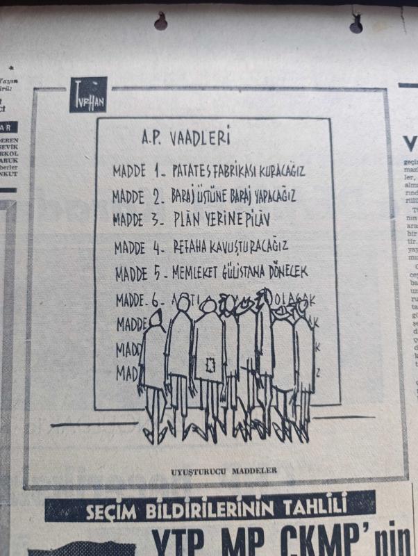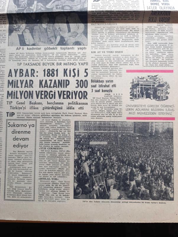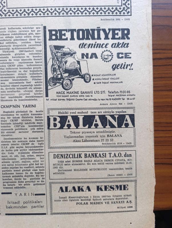 Milliyet Gazetesi - Turkish Newspaper - 4 Ekim 1965 - CHP hükümet kurabilir mi yazan Abdi İpekçi Başmakale - İsmet İnönü ve Demirel Karadeniz'de - bazı Adalet partililer içinde İsmet İnönü'nün bulunduğunu sandıkları arabaya taş attılar - İsmet İnönü Toprak reformu yapmadan çekilmem fotoğraf - Adalet Partisi lideri Süleyman Demirel Zonguldak'ta konuştu - Süleyman Demirel CHP beceriksizlik ve atalet içinde - Adalet Partili kadınlar göbekli toplantı yaptı fotoğraf - Türkiye İşçi Partisi Taksim'de büyük bir miting yaptı - Mehmet Ali Aybar 1881 kişi 5 milyar kazanıp 300 milyon vergi veriyor - Endonezya Sukarno'ya direnmeye devam ediyor - Kemal Satır Adana mitinginde konuştu Süleyman Demirel milli birlik komitesi emrinde çalıştı - Alparslan Türkeş özel demeç verdi 14'ler olayında Amerika'nın rolü vardır - Osman Bölükbaşı yarım saat istirahat etti 3 saat konuştu - uyuşturucu maddeler karikatür çizen Turhan Selçuk - dertler ve dertliler yazan Ulunay - Eski hastalık Yazan Refik Erduran, Ali Naci Karacan tarafından kaleme alınmıştır. Milliyet Gazetesi - Turkish Newspaper - 4 Ekim 1965 - CHP hükümet kurabilir mi yazan Abdi İpekçi Başmakale - İsmet İnönü ve Demirel Karadeniz'de - bazı Adalet partililer içinde İsmet İnönü'nün bulunduğunu sandıkları arabaya taş attılar - İsmet İnönü Toprak reformu yapmadan çekilmem fotoğraf - Adalet Partisi lideri Süleyman Demirel Zonguldak'ta konuştu - Süleyman Demirel CHP beceriksizlik ve atalet içinde - Adalet Partili kadınlar göbekli toplantı yaptı fotoğraf - Türkiye İşçi Partisi Taksim'de büyük bir miting yaptı - Mehmet Ali Aybar 1881 kişi 5 milyar kazanıp 300 milyon vergi veriyor - Endonezya Sukarno'ya direnmeye devam ediyor - Kemal Satır Adana mitinginde konuştu Süleyman Demirel milli birlik komitesi emrinde çalıştı - Alparslan Türkeş özel demeç verdi 14'ler olayında Amerika'nın rolü vardır - Osman Bölükbaşı yarım saat istirahat etti 3 saat konuştu - uyuşturucu maddeler karikatür çizen Turhan Selçuk - dertler ve dertliler yazan Ulunay - Eski hastalık Yazan Refik Erduran adlı eser Türkçe dilindedir.