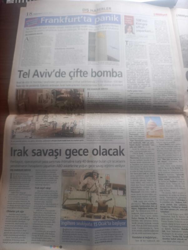 Milliyet Gazetesi - Turkish Newspaper - 6 Ocak 2003 - İşte Kürt El Kaidesi - örgütün liderlerinden Molla Muhammed Hasan Namık Durukan İle Kuzey Irak'ın Tora Bora'sı olarak anılan yerde Fotoğrafı - Halepçe'deki şeriat devleti'nin kalesine girdik - Bu Örgüt Talabani'nin kabusu - Mehmetçik'e kin beslemiyoruz - Ensar El İslam - Şevval Sam İstanbul Türkçesini unutuyorum bazen fotoğraf - Arzu Yanardağ sahnede Müge Oruçkaptan ile öpüşecek Fotoğrafı - Tel Aviv'de çifte bomba - Irak savaşı gece olacak - yüzüklerin efendisi iki kule filmi Capitol ve Avşar sinemasında - televizyon programı - Milliyet yılı sporcusu 2002 - 2002'de tarih yazan Süreyya Ayhan Fotoğrafı - yılın futbolcusu Nihat Kahveci Fotoğrafı - yılın antrenörü Rıza Çalımbay - Yılın spor adamı Levent Bıçakçı - dünyada yılın sporcusu Schumacher - Fair Play ödülü Galatasaray başkanı Özhan Canaydın - Fenerbahçe teknik direktörü Oğuz Çetin Antalya'da Fenerbahçe'yi bilimsel çalıştırıyor Fotoğrafı - Aşkın Nur Yengi diyeti Fotoğrafı adlı eser, Kitap > Süreli Yayınlar > Gazeteler > Türkiye > Genel > Günlük kategorisinde İkinci El olarak satıştadır.