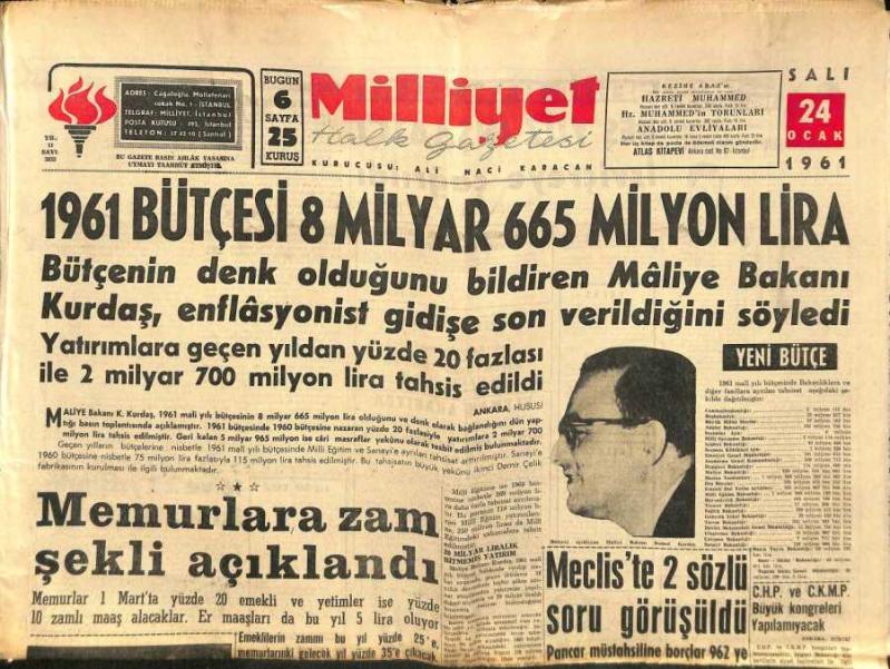 Milliyet Halk Gazetesi 24 Ocak 1961 - 1961 Bütçesi 8 Milyar 665 Milyon Lira - Memurlara Zam Şekli Açıklandı GZ92829, en son 24 gün önce güncellenmiştir.