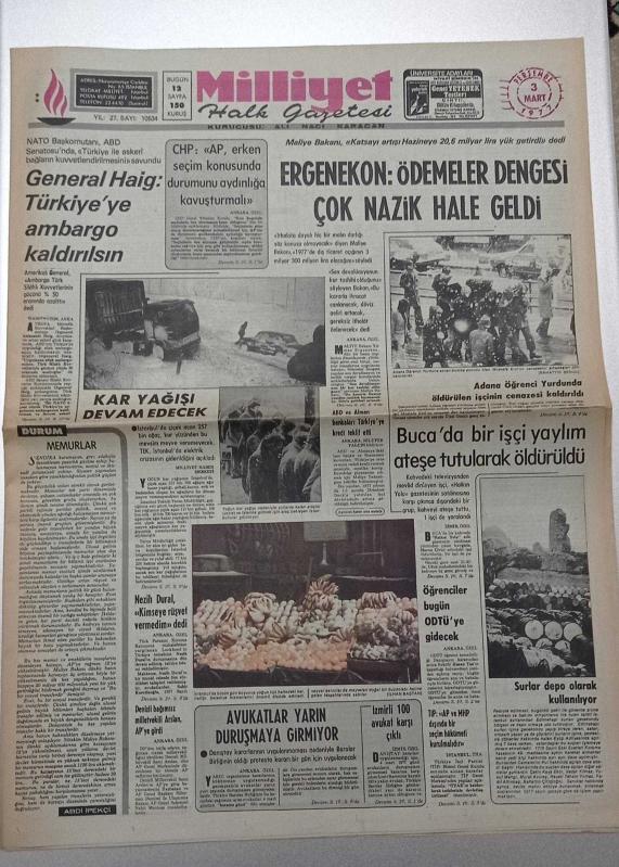 Milliyet Halk Gazetesi 3 Mart 1977- Ergenekon: Ödemeler dengesi çok nazik hale geldi- AET, pamuk ipliği için Ankara'nın cevabını bekliyor adlı eser, Kitap > Süreli Yayınlar > Gazeteler > Türkiye > Genel > Günlük kategorisinde İkinci El olarak satıştadır.