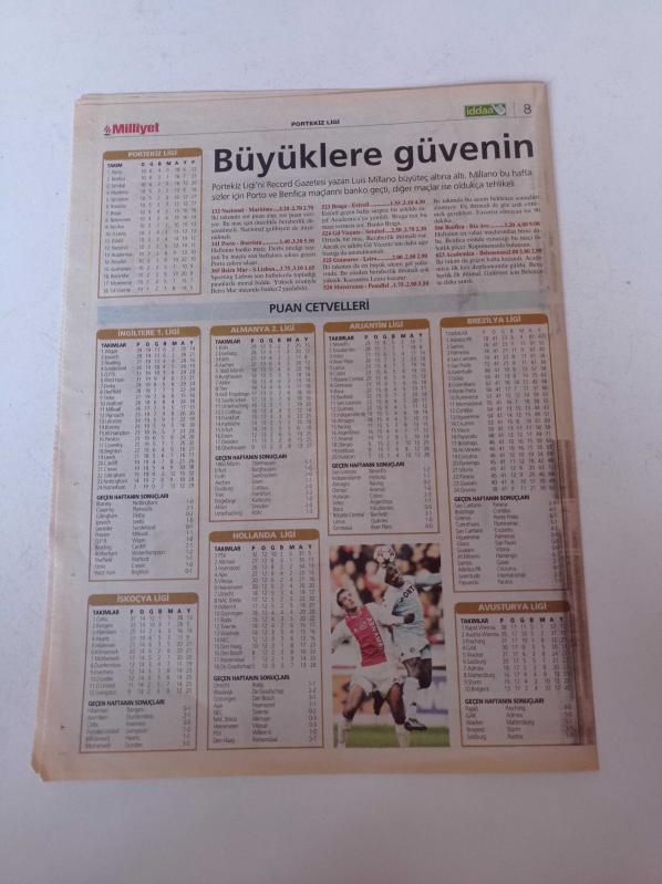 Sayfa Boyutu: 28*38cm Sayfa Sayısı:8 Milliyet İddaa Gazetesi Yıpranma, sararmalar, kupon kesiği ve yırtılmalar zamana bağlı olarak görülebilir