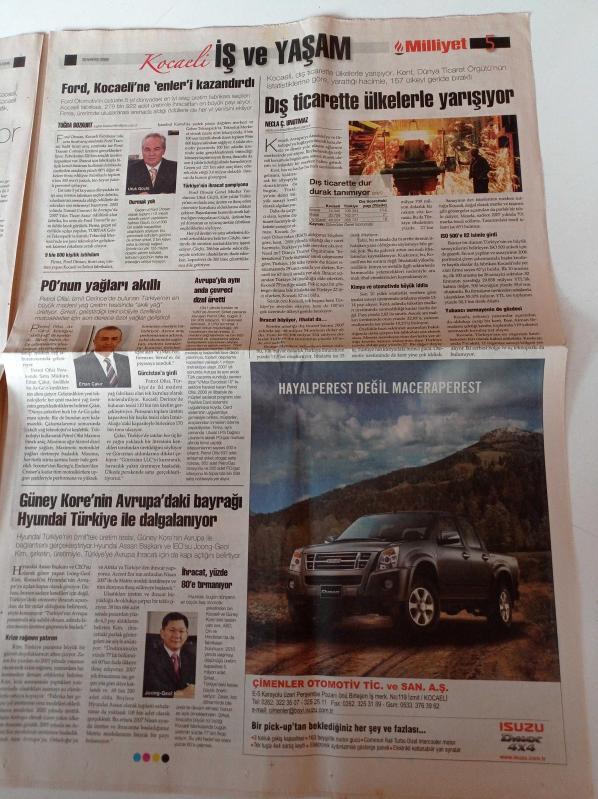 Milliyet İş Ve Yaşam Gazetesi - 30 Mayıs 2008 - Bir Şehrin Dönüşüm Hikayesi Kocaeli - Kocaeli Büyükşehir Belediye Başkanı İbrahim Karaosmanoğlu - Sanayide Yeni Rota Belirleniyor - Pişmaniye - Kandıra Keteni - Karamürsel Sepeti - Hereke Halısı adlı eser Türkçe dilindedir.