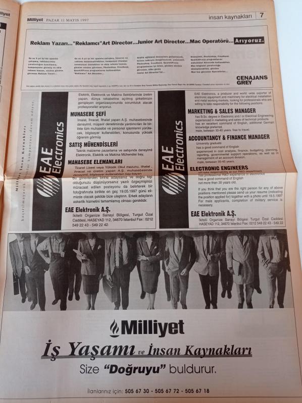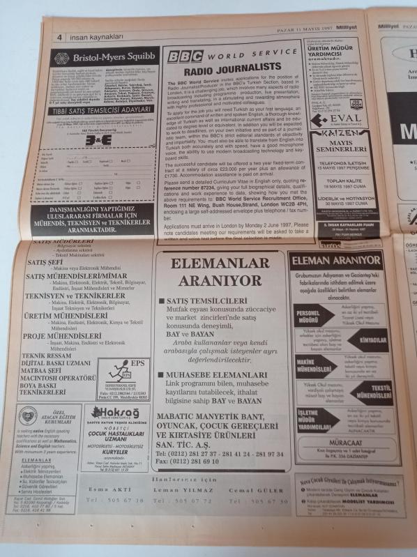 Milliyet İş Yaşamı Ve İnsan Kaynakları Gazetesi - 11 Mayıs 1997 - Sayı 23 - Türk Hava Yolları Pazarlama Başkanı Aliye Alptekin Çalışan Annelere Sesleniyor- Gelişim Ve Meslek Fuarı - TRİSAD Atakta - Medline Mobil Sağlık Hizmetleri adlı eser Türkçe dilindedir.
