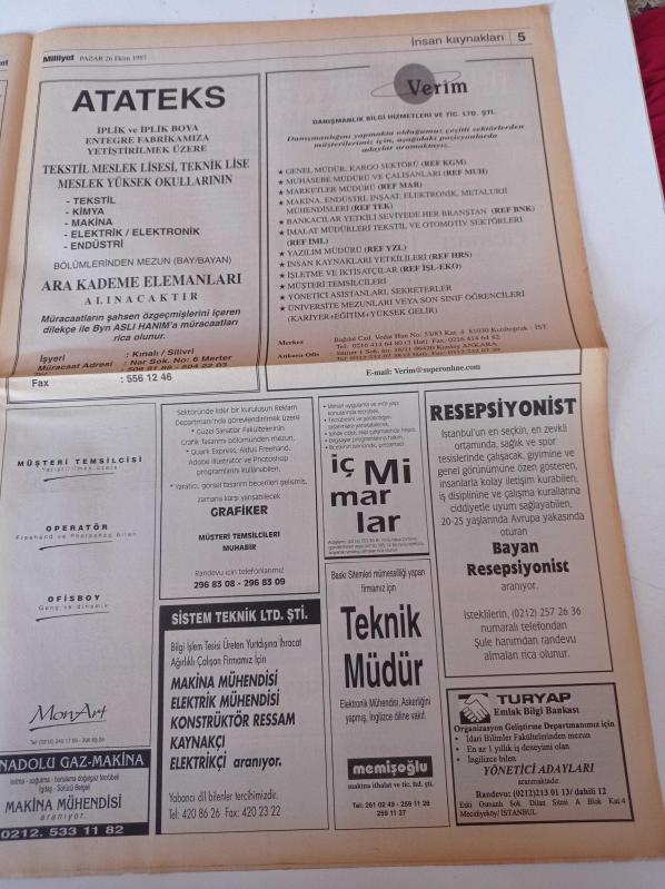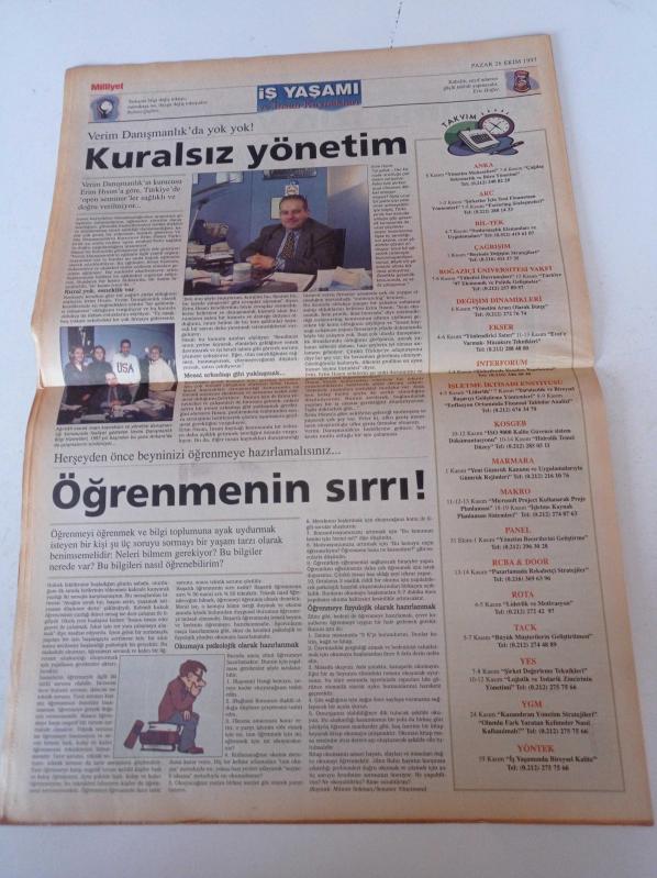 Milliyet İş Yaşamı Ve İnsan Kaynakları Gazetesi - 26 Ekim 1997 - Sayı 47 - Bayındır Holding Hızla Gelişiyor - Eroğlu Şirketler Grubu Başkanı Nurettin Eroğlu Fotoğrafı- Bu Şirkette Kural Yok Verim Danışmanlık adlı eser Türkçe dilindedir.