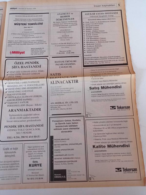 Sayfa Boyutu: 38*56cm Sayfa Sayısı:8 Milliyet İş Yaşamı Ve İnsan Kaynakları Gazetesi Yıpranma, sararmalar, kupon kesiği ve yırtılmalar zamana bağlı olarak görülebilir
