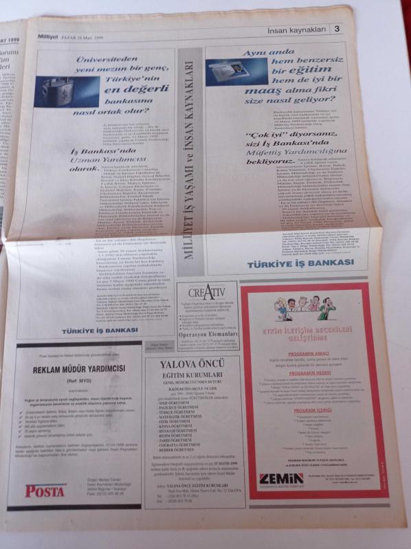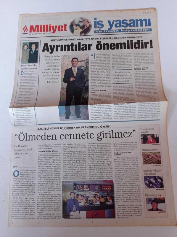 Milliyet İş Yaşamı Ve İnsan Kaynakları Gazetesi - 28 Mart 1999 - Sayı 121 - Demokratik Sol Parti Şişli Belediye Başkan Adayı Mustafa Sarıgül Fotoğrafı - Ölmeden Cennete Girilmez - McDonald's - İhracat Yapan Yan Sanayiciler adlı eser Türkçe dilindedir.