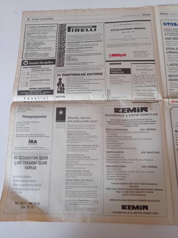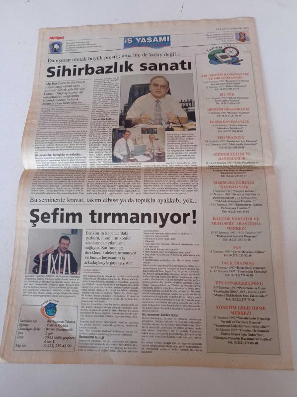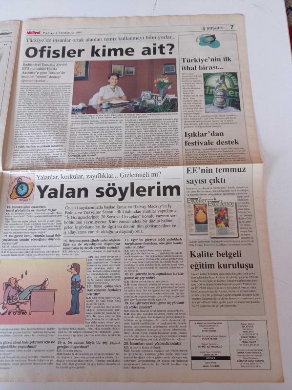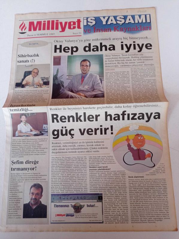 Milliyet İş Yaşamı Ve İnsan Kaynakları Gazetesi - 6 Temmuz 1997 - Sayı 31 - Toprak Holding İnsan Kaynakları Müdürü Oktay Valunya Fotoğrafı - Endüstriyel Temizlik Servisi ETS'nin Sahibi Harika Akdemir - Sihirbazlık Sanatı adlı eser Türkçe dilindedir.