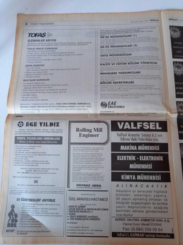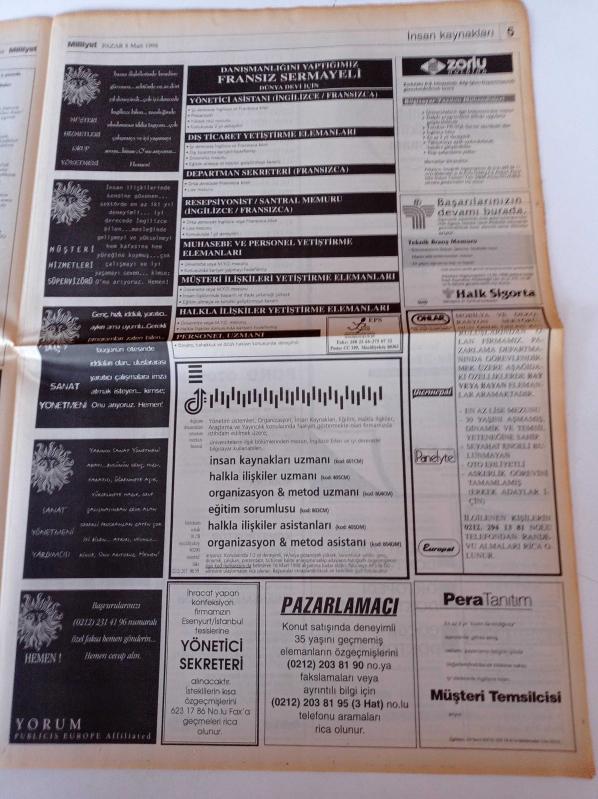 Sayfa Boyutu: 38*56cm Sayfa Sayısı:8 Milliyet İş Yaşamı Ve İnsan Kaynakları Gazetesi Yıpranma, sararmalar, kupon kesiği ve yırtılmalar zamana bağlı olarak görülebilir
