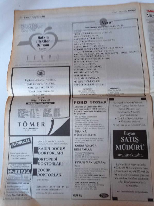 Milliyet İş Yaşamı Ve İnsan Kaynakları Gazetesi - 8 Mart 1998 - Sayı 66 - Bilim Adamları Dönüyor Tersine Beyin Göçü Başladı - Ali Nesin Fotoğrafı - Beşeri Sermaye Hareketliliği - Doktor Uğur Tandoğan adlı eser Türkçe dilindedir.