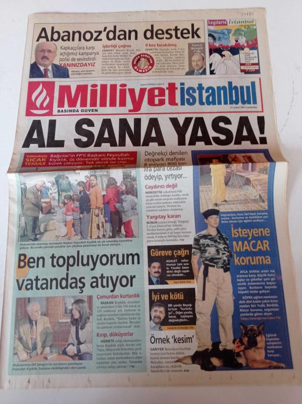 Milliyet İstanbul Gazetesi - 21 Şubat 2001 - Al Sana Yasa - İsteyene Macar Koruma - İstanbul Emniyet Müdürü Kazım Abanoz adlı eser, Kitap > Süreli Yayınlar > Gazeteler kategorisinde İkinci El olarak satıştadır.