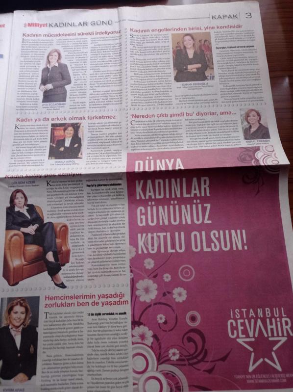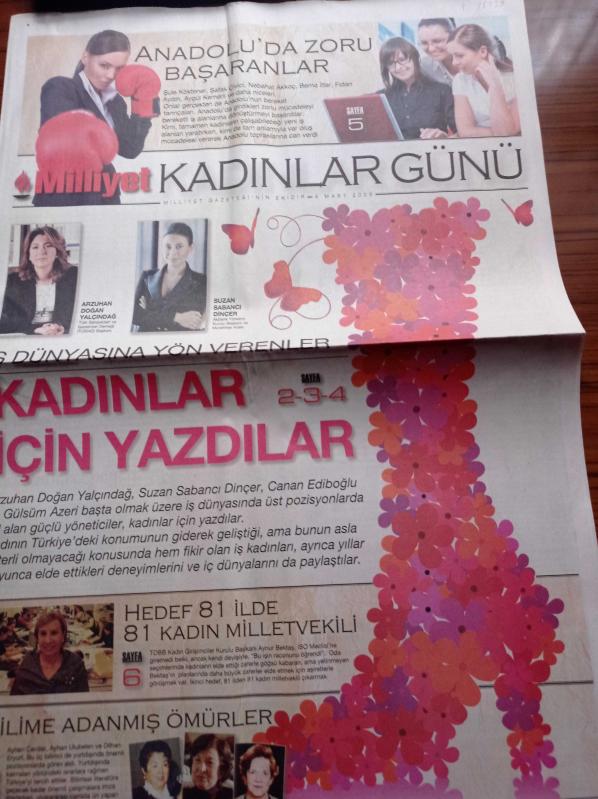 Milliyet Kadınlar Günü Gazetesi - 8 Mart 2009 - Anadolu'da Zoru Başaranlar- İş Dünyasına Yön Verenler Kadınlar İçin Yazdılar - Hedef 81 İlde 81 Kadın Milletvekili - Bilime Adanmış Ömürler - Ayhan Çavdar - Ayhan Ulubelen- Arzuhan Doğan Yalçındağ - Suzan Sabancı Dinçer - Türk Tuborg Carlsberg CEO'su Damla Birol - Gülsüm Azeri - Yeşil Kundura - Şişecam adlı eser Türkçe dilindedir.