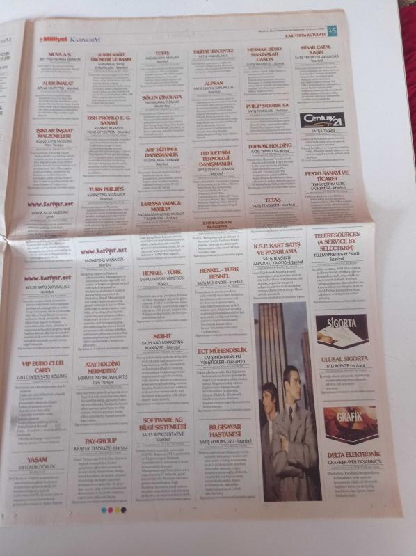 Sayfa Boyutu: 38*56cm Sayfa Sayısı:20 Milliyet Kariyerim Gazetesi Yıpranma, sararmalar, kupon kesiği ve yırtılmalar zamana bağlı olarak görülebilir