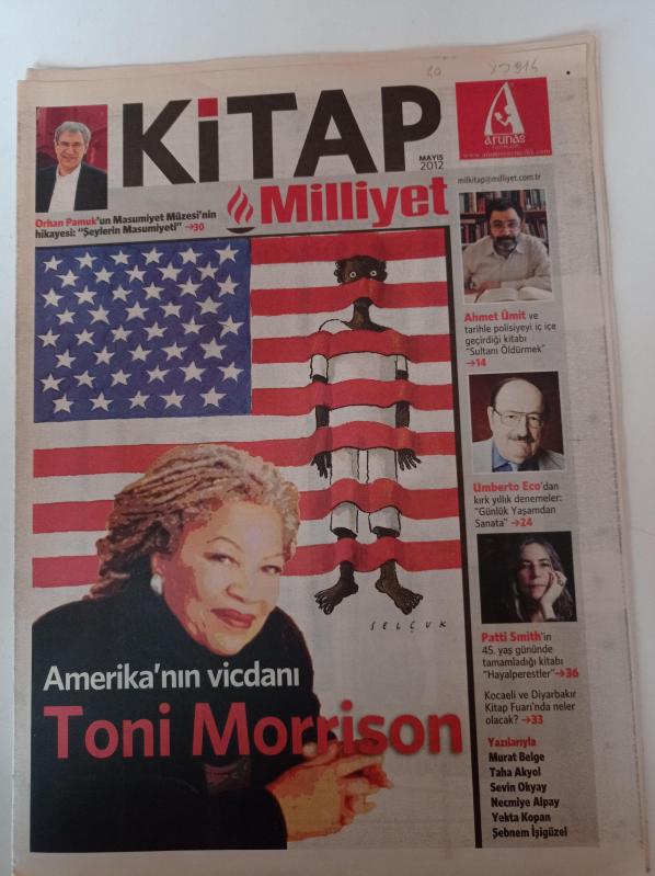 Milliyet Kitap Gazetesi - Mayıs 2012 - Amerika'nın Vicdanı Toni Morrison Fotoğrafı - Ahmet Ümit - Sultanı Öldürmek - Umberto Eco - Günlük Yaşamdan Sanata - Patti Smith'in 45. Yaş Gününde Tamamladığı Kitabı Hayalperestler - Orhan Pamuk - Masumiyet Müzesi adlı eser Türkçe dilindedir.