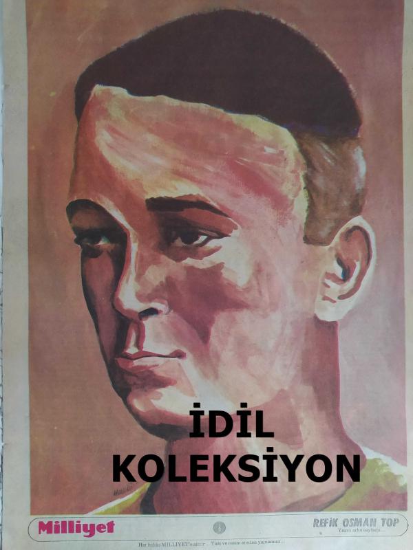 Milliyet Magazin Gazetesi - Refik Osman Top Posteri - 26x38cm boyutundadır - Futbol yaşamında 12 kulüp değiştiren Refik Osman Top, Golspor isimli bir dergide yazdığı yazıdan dolayı boykot cezasına çarptırıldı - Gazete tam değildir sadece poster kısmıdır - Tek yaprak arkalı önlüdür Yıpranma, sararmalar, kupon kesiği ve yırtılmalar zamana bağlı olarak görülebilir