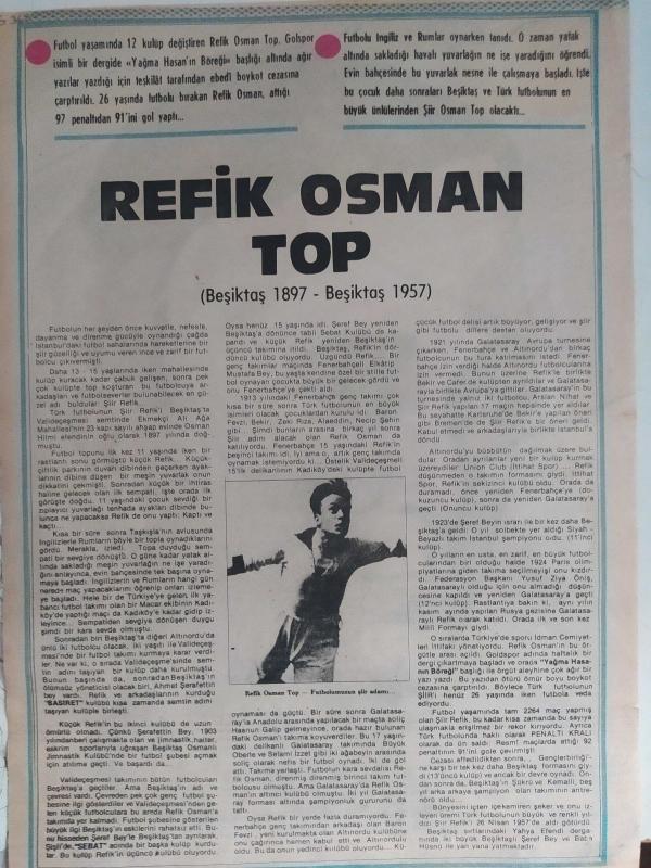 Kitap [İstanbul] yayınlanmıştır. 2 sayfadır. Milliyet Magazin Gazetesi - Refik Osman Top Posteri - 26x38cm boyutundadır - Futbol yaşamında 12 kulüp değiştiren Refik Osman Top, Golspor isimli bir dergide yazdığı yazıdan dolayı boykot cezasına çarptırıldı - Gazete tam değildir sadece poster kısmıdır - Tek yaprak arkalı önlüdür adlı eser Türkçe dilindedir.