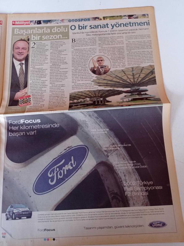 Milliyet Otospor Gazetesi - Cem Hakko Fotoğrafı - Dünya Motorsporları Türkiye'de - Formula 1 - Saffet Üçüncü - TOMSFED Başkanı Mümtaz Tahincioğlu adlı eser Türkçe dilindedir.