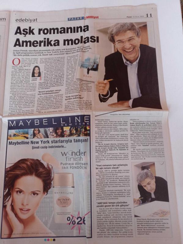 Milliyet Pazar Gazetesi - 10 Ekim 2004 - Bedri Baykam - Karikatürist Yiğit Özgür -Ben Teşhirci Değil Nüdistim Makine Mühendisi Muzaffer A. - Beşiktaş Antrenörü Vicente Del Bosque- Orhan Pamuk adlı eser Türkçe dilindedir.
