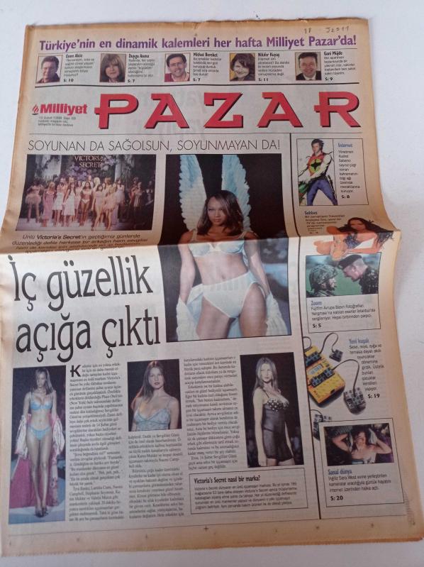 Milliyet Pazar Gazetesi - 15 Şubat 1998 - Sayı 65 - Travestiler Kraliçesi Sisi Tansu Çiller'i Bile İkna Ederim - Victoria Secret - Zagor- Böyle Teşhircilik Görülmedi - Naomi Campbell adlı eser Türkçe dilindedir.
