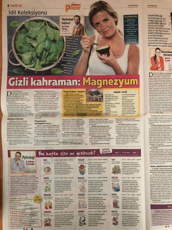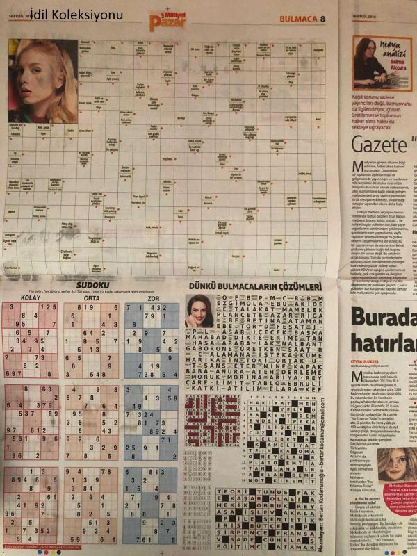 Milliyet Pazar Gazetesi , 16 Eylül 2018 , Ödüllü Kasnak Stili , Çocuklar Duymasın , Pınar Altuğ , Tamer Karadağlı , Andaç Haznedaroğlu , Dua Lipa , Organik Külaha Girdi , Öldürülen Kadınların Sesi Oldular , Magnezyum Zengini Besinler adlı eser Türkçe dilindedir.