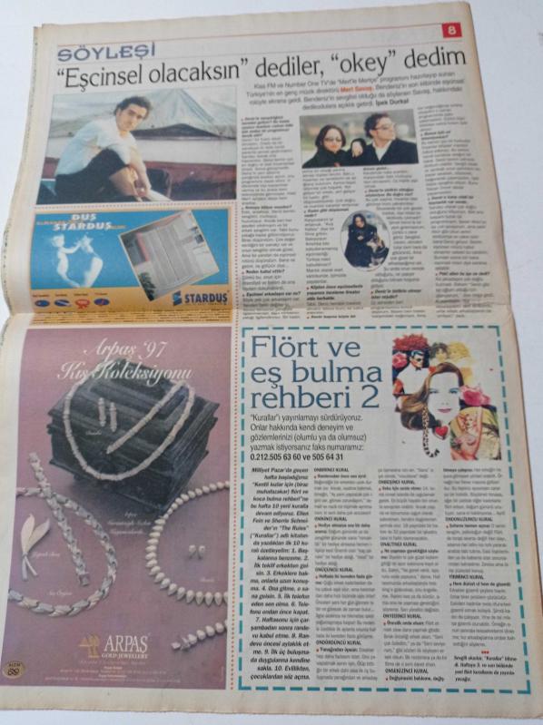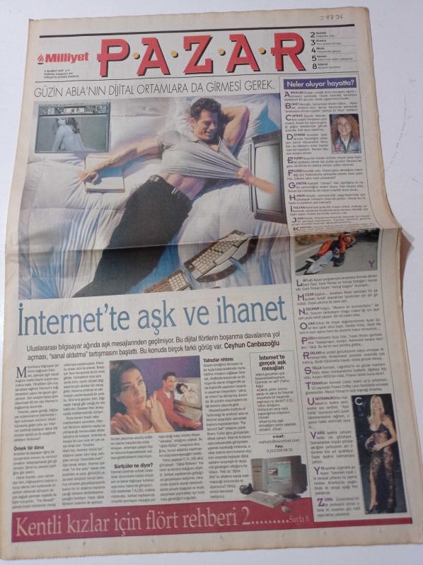 Milliyet Pazar Gazetesi - 2 Şubat 1997 - Sayı 11 -Eşcinsel olacaksın dediler,okey dedim:Mert Savaş- Güzin Abla'nın Dijital Ortamlara Da Girmesi Gerek - İnternette Aşk Ve İhanet - Billur Kalkavan - Stella Tennant - Ozan Orhon - Neslihan Yargıcı adlı eser Türkçe dilindedir.