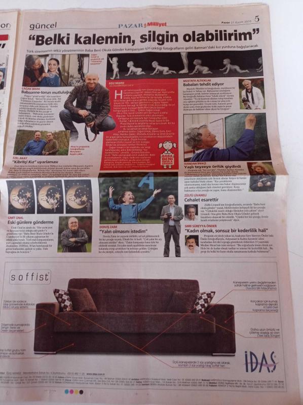 Milliyet Pazar Gazetesi - 21 Kasım 2010 - Müslüm Gürses - Ahmet Kaya - Vedat Milor- Ünlü Yönetmenler Kızların Okula Girebilmesi İçin Fotoğraf Çekti - Mustafa Altıoklar - Çağan Irmak - Ümit Ünal - Handan İpekçi - Ezel Akay - Derviş Zaim Fotoğrafı adlı eser Türkçe dilindedir.