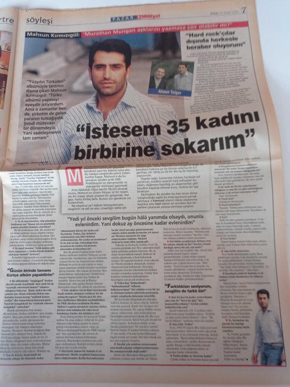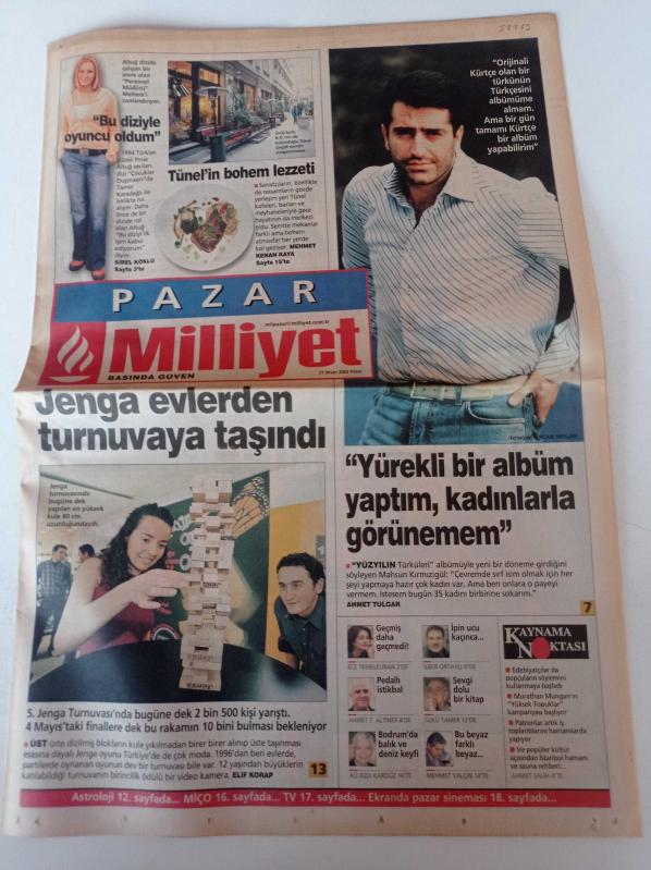 Milliyet Pazar Gazetesi - 21 Nisan 2002 - Mahsun Kırmızıgül Fotoğrafı- Jenga Turnuvası - Çocuklar Duymasın Dizisi - Pınar Altuğ - İlber Ortaylı adlı eser Türkçe dilindedir.