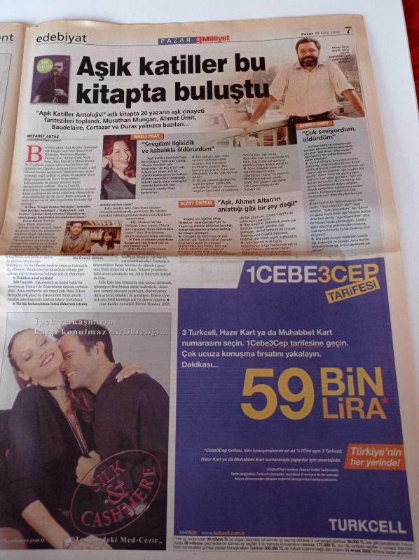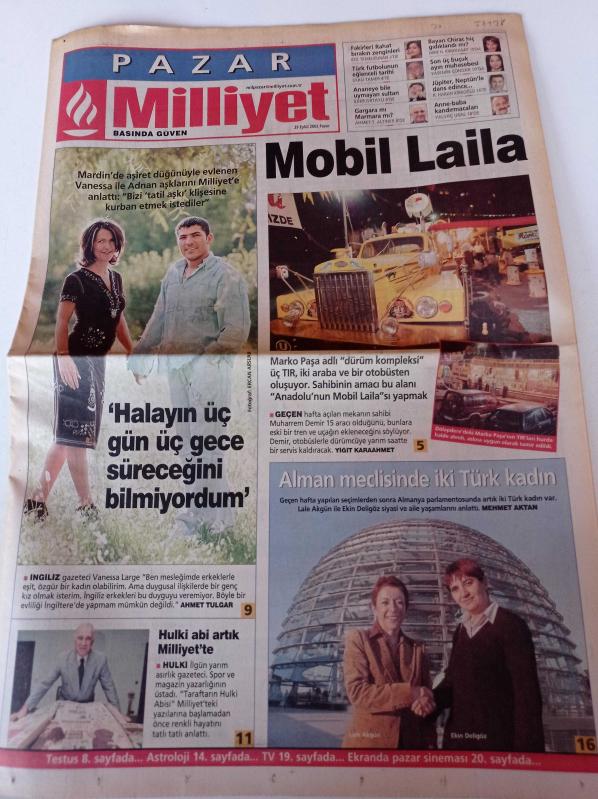 Milliyet Pazar Gazetesi - 29 Eylül 2002 - Mardin'de Aşiret Düğünüyle Evlenen Vanessa - Alman Meclisinde İki Türk Kadın -Lale Akgün - Ekin Deligöz- Marko Paşa Dürüm Kompleksi adlı eser Türkçe dilindedir.