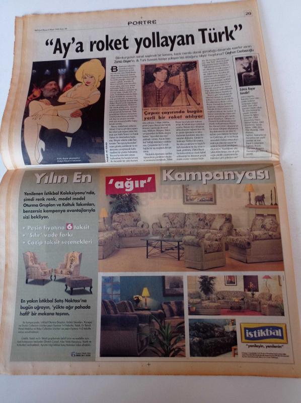 Milliyet Pazar Gazetesi- 8 Mart 1998 - Sayı 68 - Ay'a Roket Yollayan Türk Zühtü Bayar- Bu Resimlerde Kadın Nerede - Melinda - Balkan Naci İslimyeli - Republica'nın Solisti Saffron adlı eser Türkçe dilindedir.
