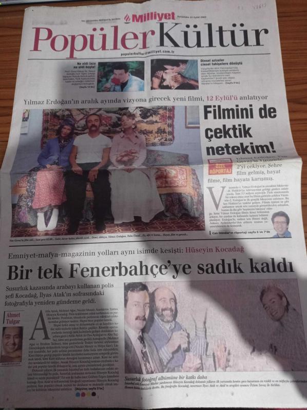 Milliyet Popüler Kültür Gazetesi - 25 Eylül 2003 - Emniyet Mafya Magazinin Yolları Aynı İsimde Kesişti Hüseyin Kocadağ - Susurluk Kazasında Arabayı Kullanan Polis Şefi Hüseyin Kocadağ Bir Tek Fenerbahçe'ye İhanet Etmedi - Yılmaz Erdoğan Vizontele 2 Filminde 12 Eylül'ü Anlatıyor - Deniz Akkaya - Tuba Ünsal - Davut Güloğlu - Dinsel Azizeler Cinsel Fahişelere Dönüştü adlı eser Türkçe dilindedir.