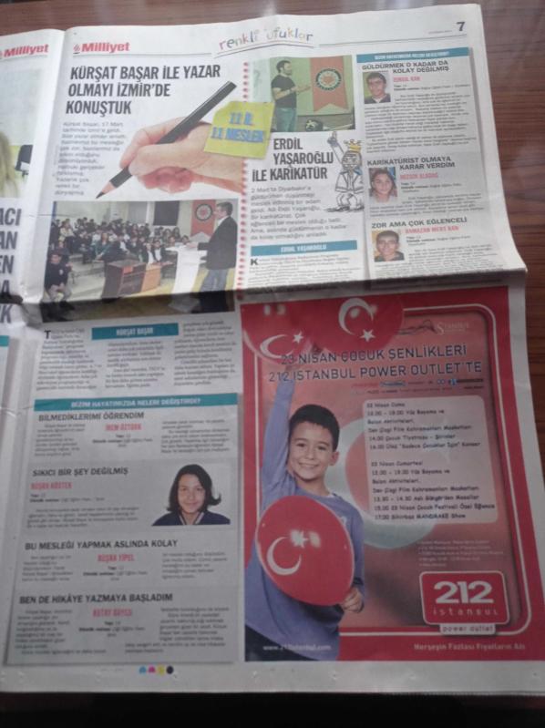 Milliyet Renkli Ufuklar Gazetesi - 23 Nisan 2011 - Öğretmenler Doktorlar Hemşireler Mühendisler Arkeologlar Sporcular Tasarımcılar Bize Bırakacağınız Dünya İçin Size Yazdık - Bir Ansiklopedi Okudum Hayatım Değişti - Ünlüler 600 Çocuğa 11 İlde 11 Mesleği Anlattı - Tarihe İz Bırakanlardan Meslekleri Öğrendik - Çocuk Şenliği Bu Yıl Tam 27. Kez Düzenleniyor - Türkiye Eğitim Gönüllüleri Vakfı Genel Müdürü Nurdan Şahin adlı eser Türkçe dilindedir.