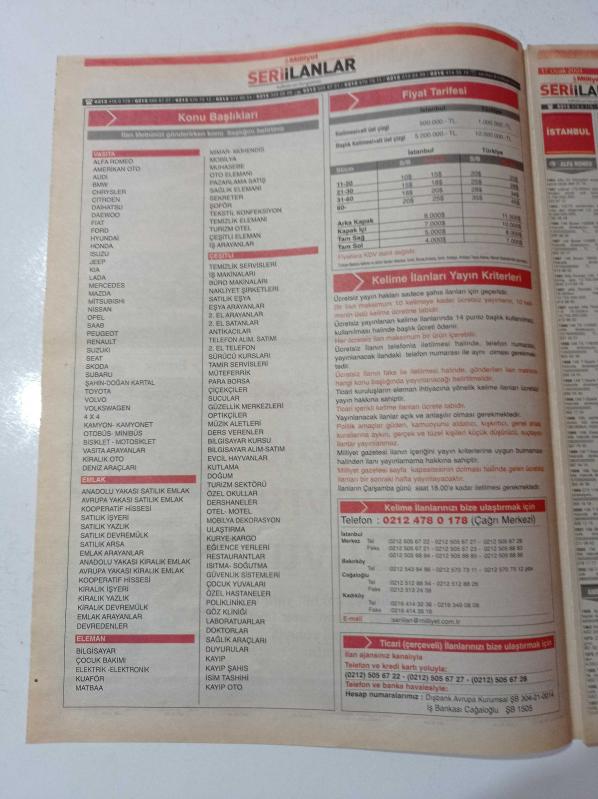 Milliyet Seri İlanlar Gazetesi - 17 Ocak 2004 - Sayı 35 - Nakliyeciler - Eğitim - Alfa Romeo - Amerikan Oto - Temizlik Servisleri - İş Makinaları adlı eser Türkçe dilindedir.