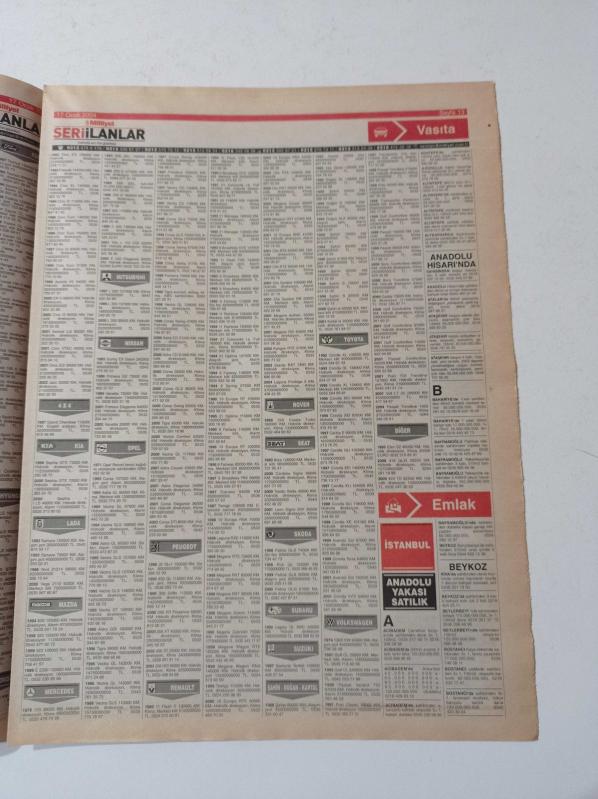 Sayfa Boyutu: 28*38cm Sayfa Sayısı:28 Seri İlanlar Gazetesi Yıpranma, sararmalar, kupon kesiği ve yırtılmalar zamana bağlı olarak görülebilir