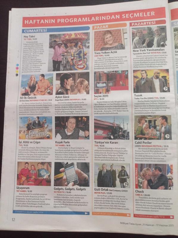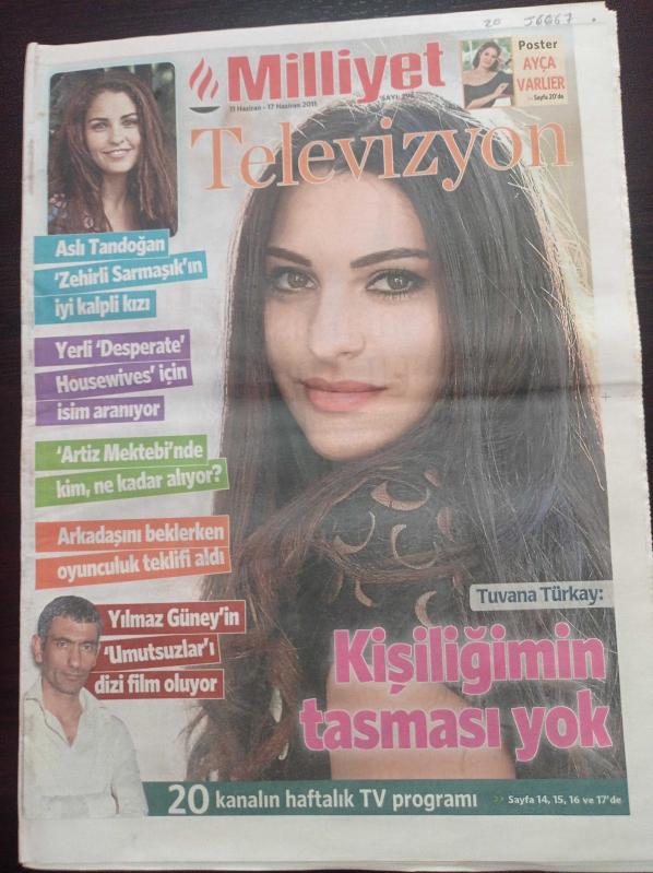 Milliyet Televizyon Gazetesi - 11 Haziran 17 Haziran 2011 - Sayı 296 - Tuvana Türkay Fotoğrafı - Kişiliğimin Tasması Yok - Yılmaz Güney'in Umutsuzlar'ı Dizi Oluyor - Aslı Tandoğan Zehirli Sarmaşık'ın İyi Kalpli Kızı - Artiz Mektebi adlı eser Türkçe dilindedir.