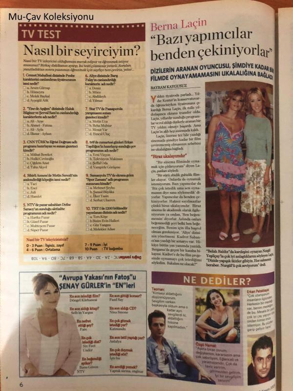 Milliyet Televizyon Gazetesi , 12 - 18 Kasım 2005 ,Yalancı Damat,Özgür Çevik,Nehir Erdoğan,Sülhi Dölek- TV'de Güldürüp Filmde Ağlatacak , Engin Günaydın , Fulin Erler , Mehmet Kurt , Lerzan Mutlu , Ufuk Özkan , Demet Evgar , İlker Yasin , Sinem Öztufan , Emrah , Faruk Turgut , Berna Laçin , Özgü Namal , Erkan Petekkaya , Teoman adlı eser Türkçe dilindedir.
