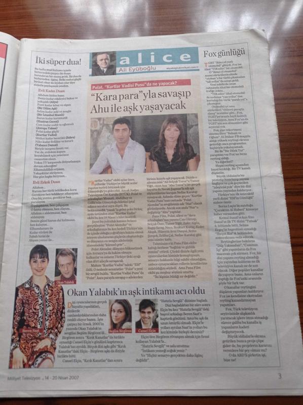 Milliyet Televizyon Gazetesi - 14 20 Nisan 2007 - Sayı 79 - İdil Biret Piyano Resitali - Abbas Güçlü İle Bizim Mucitler - Ferdi Tayfur Fotoğrafı - Kurtlar Vadisi Terör - Necati Şaşmaz - Gökçe Bahadır Ailesini Niye Ağlattı - Haberin Dört Ekran Yüzü Aslı Kaya Işınsu Çiftçi Şafak Akçayoğlu Ve Burcu Şentürk - Okan Yalabık'ın Aşk İntikamı Acı Oldu - Cansel Elçin - Nefise Karatay adlı eser Türkçe dilindedir.