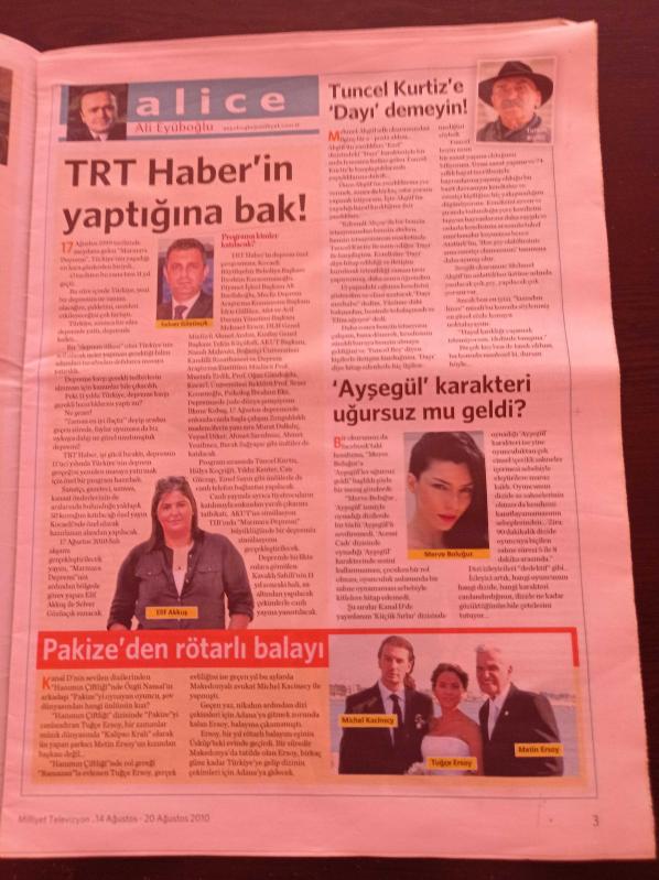Milliyet Televizyon Gazetesi - 14 Ağustos 20 Ağustos 2010 - Bade İşçil Posteri-Rojda Demirer Fotoğrafı - Geniş Aile Dizisi - Fırat Tanış - Emina Sandal Sırbistan'daki Gibi Sevilmek İstiyorum - Tuğba Karaca adlı eser Türkçe dilindedir.