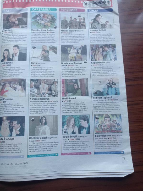 Milliyet Televizyon Gazetesi - 15 21 Aralık 2007 - Şule Bulut Ve Şükran Güzeliş Doğum Günü Gün Sayıyor - Spikerlerin İlginç Kararları - Var Mısın Yok Musun Yarışması - Acun Ilıcalı İyi Bir Cast Yaptık Başardık - Yerli Emmy Ödülleri Kristal Ekran - Sinekli Bakkal - Özge Özberk - Fatih Altaylı - Sinan Çetin - Emel Sayın- Reha Muhtar - Güner Ümit - Demet Akbağ - Murat Bardakçı adlı eser Türkçe dilindedir.