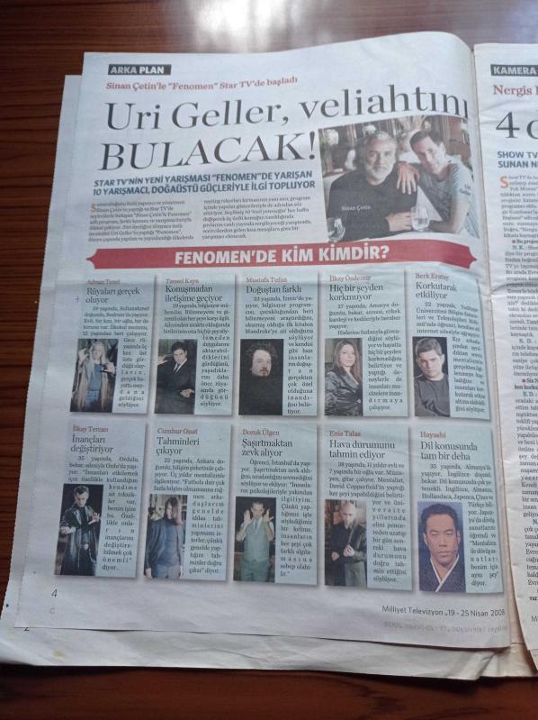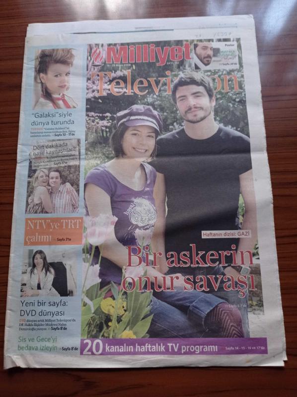 Milliyet Televizyon Gazetesi - 19 25 Nisan 2008 - Sayı 132 - Mustafa Üstündağ Muro Posteri - Kurtlar Vadisi - Haftanın Dizisi Gazi - Ahmet Kural Fotoğrafı - NTV'ye TRT Çalımı - Nergis Kumbasar - Tolga Çevik - Acun Ilıcalı - Nejat İşler - Melisa Sözen - Şener Şen - İsmail Hacıoğlu - Aslı Tandoğan - Kenan İmirzalıoğlu - Kabadayı Filmi - Komplo Uydusu Andromeda adlı eser Türkçe dilindedir.