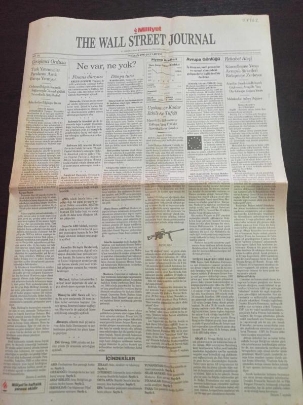 Milliyet The Wall Street Journal Gazetesi - 7 Nisan 1997 - Sayı 48 - Seks Sinekler Ve Videoteyp-Türk Yatırımcılar Paralarını Artık Barışa Yatırıyor- Uçaksavar Kadar Etkili Av Tüfeği - İsviçre Saatleri Geri Kalıyor adlı eser Türkçe dilindedir.