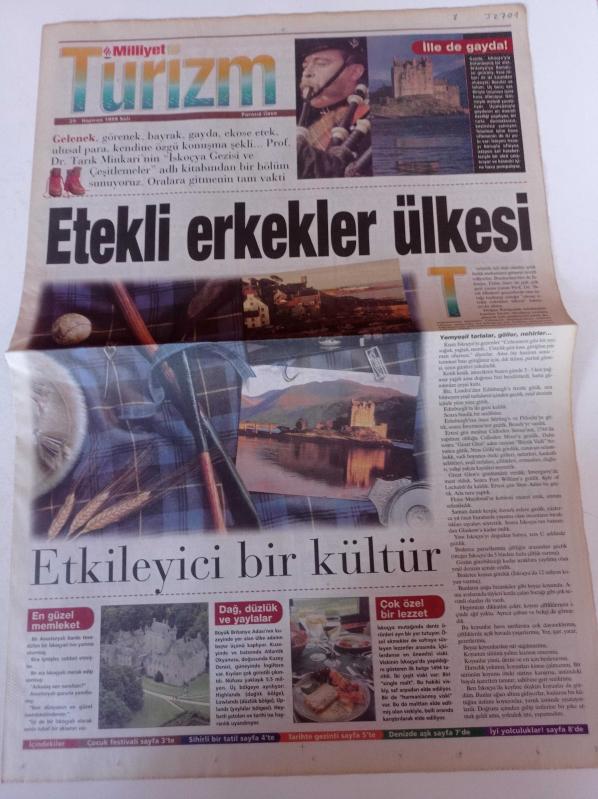 Milliyet Turizm - 29 Haziran 1999- Etekli Erkekler Ülkesi İskoçya - Çocuk Festivali - Denizde Aşk - Single Malt Viski adlı eser Türkçe dilindedir.