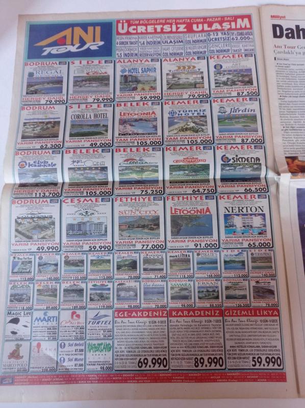 Sayfa Boyutu: 38*56cm Sayfa Sayısı:8 Milliyet Turizm Gazetesi Yıpranma, sararmalar, kupon kesiği ve yırtılmalar zamana bağlı olarak görülebilir