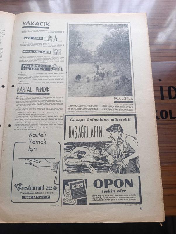 Milliyet Turizm Gazetesi - Turkish Newspaper - 1960'li Yıllar - İstanbul - Yalova'da termal otelinin kaplıcalarının görünüşü - Yalova'da nerede nasıl kalınır - Çınarcık ne görülür ne yapılır - Çınarcık Teşvikiye arasında tarihi eser kalıntıları Fotoğrafı - Gökçedere Fotoğrafı - balıkçı köyü Karaburun Fotoğrafı - Kilyos'ta nerede ne yenir Fotoğrafı - Polonezköy Fotoğrafı - kartal ve Pendik Turizm yönünden büyük bir gelişme gösterdi - Marmara bölgesi Turizm haritası - Ağva'nın genel görünüşü sol taraf tabii plajdır Fotoğrafı - Türk Pirelli - Motel Tahir Şile Yeşilçay Ağva hizmete açılmıştır - Silivri'de kamp piknik yerleri - Silivri'de Avdan dönen balıkçı motorları Fotoğrafı - Kumburgaz Motel A Plaj ve Restoran - Silivri'nin genel görünüşü - amatörler için en kolay balık avcılığı Çaparicilik Fotoğrafı - resim ve haritalar Bedri Koraman ve Orhan Alkaya - Kumbaba Moteli - Değirmen Oteli - Turistik Kilyos Oteli - Opon ağrı kesici - U.S. Royal otomobil lastiği - Kolyoz avcılığı adlı eser, Kitap > Süreli Yayınlar > Gazeteler > Türkiye > Genel > Günlük kategorisinde İkinci El olarak satıştadır.